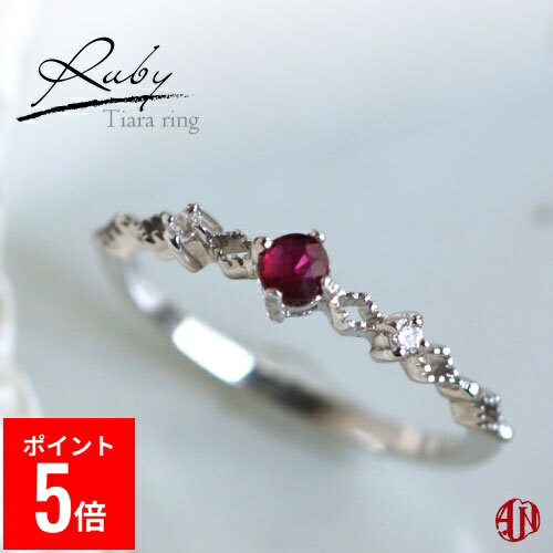 スターリングシルバー925製 Tiara ring< A.UN jewelry>ティアラリング◆ルビー◆ Silver925 / 7号 9号 11号 13号/ 7月誕生石<鑑別済み>ティアラクラウンクラウンリングシルバー925 ダイヤモンド指輪華奢
