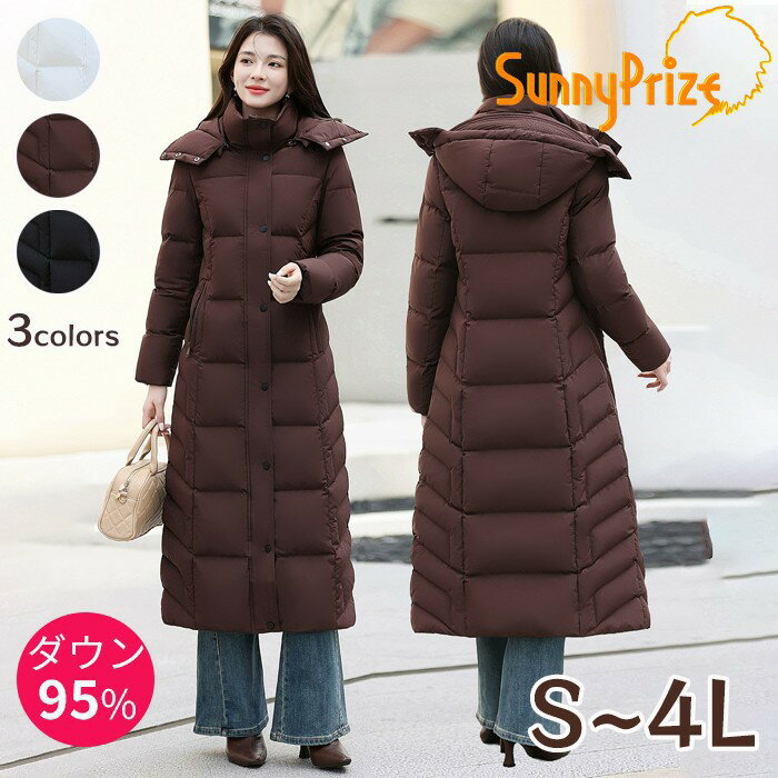 軽くて暖かいダウン95%の超ロングコート S M L LL 3L 4L ホワイトコーヒーブラック無地おしゃれ体型カバー<スカーフおまけ>ロングダウンコートレディース 95%ダウンダウンコートロング丈ダウンジャケット冬アウター超ロング防寒コートフード付き軽量暖かい撥水防風通勤通学お出かけカジュアルフォーマルシンプル大きいサイズ md018d7d7lc